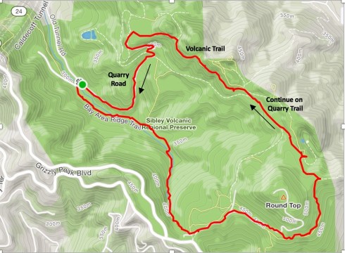 Full Map of Sibley Volcanic Preserve – Trailhead for this hike is where it says “Old Tunnel Road Staging Area”