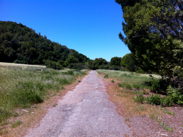 Soon you’ll begin climbing and climbing, up, up, up to the ridge that surrounds the valley. At about 4.5 miles of hiking you’ll reach the high point of 1275 feet. There is a fire road heading off to the right that actually leads to the back of St. Mary’s College. But the Loop Trail continues straight. Enjoy the vistas of undeveloped land in all directions!