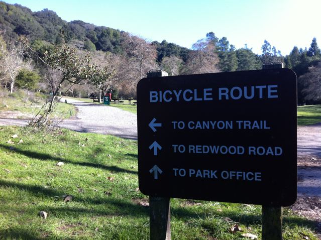 Trailhead: The trailhead has a sign, gate, kiosk, and maps of Redwood Park, if you don’t have one.